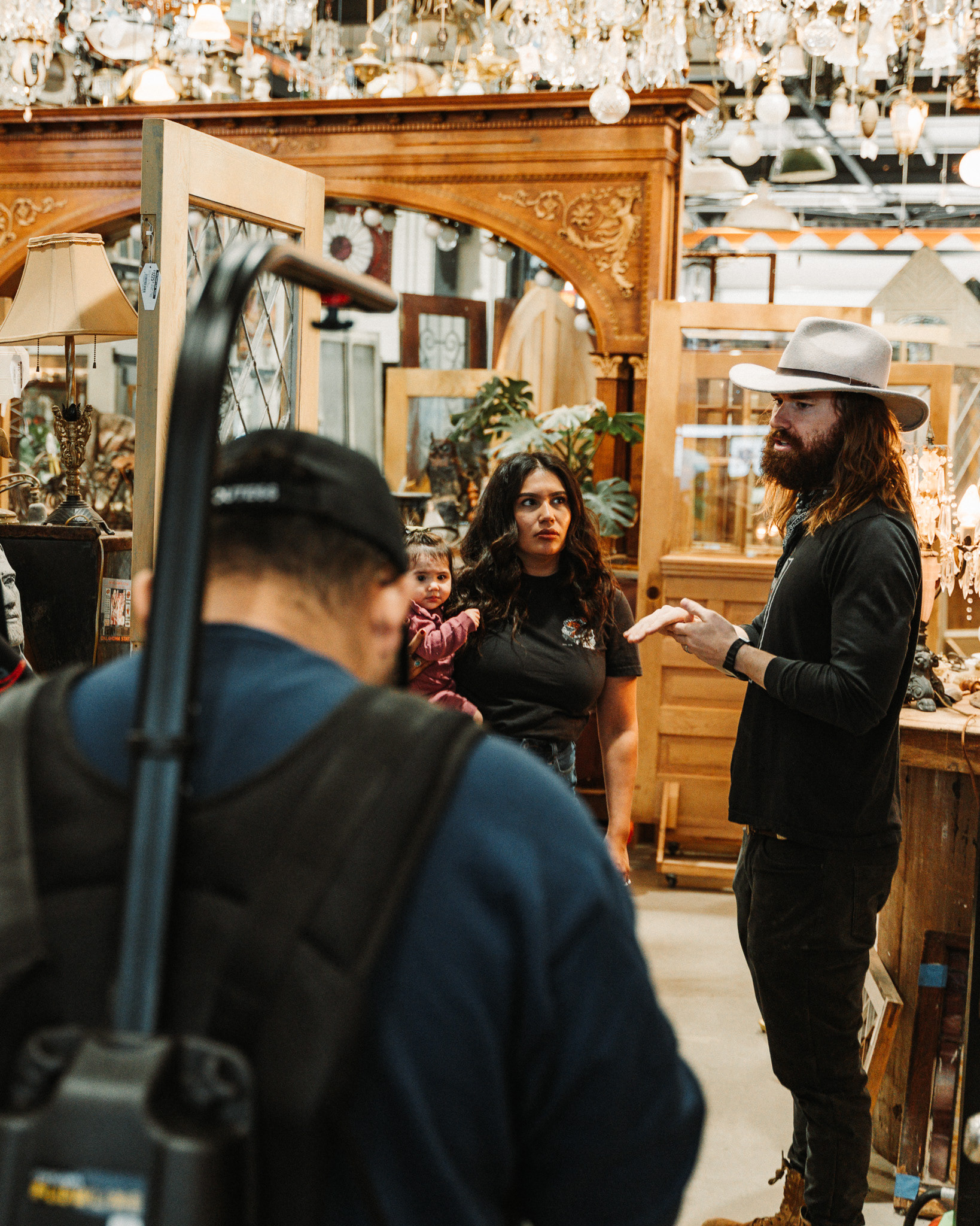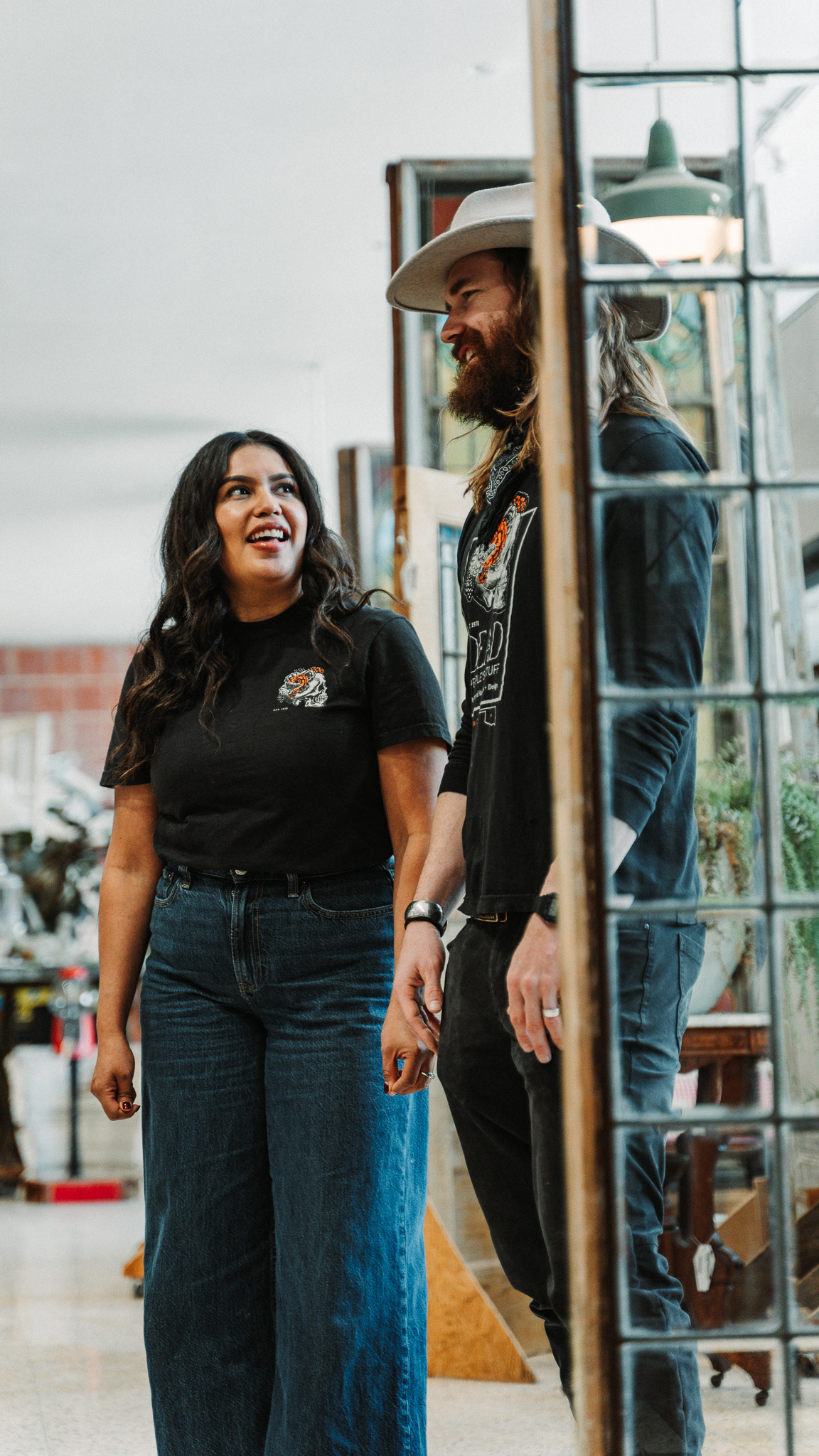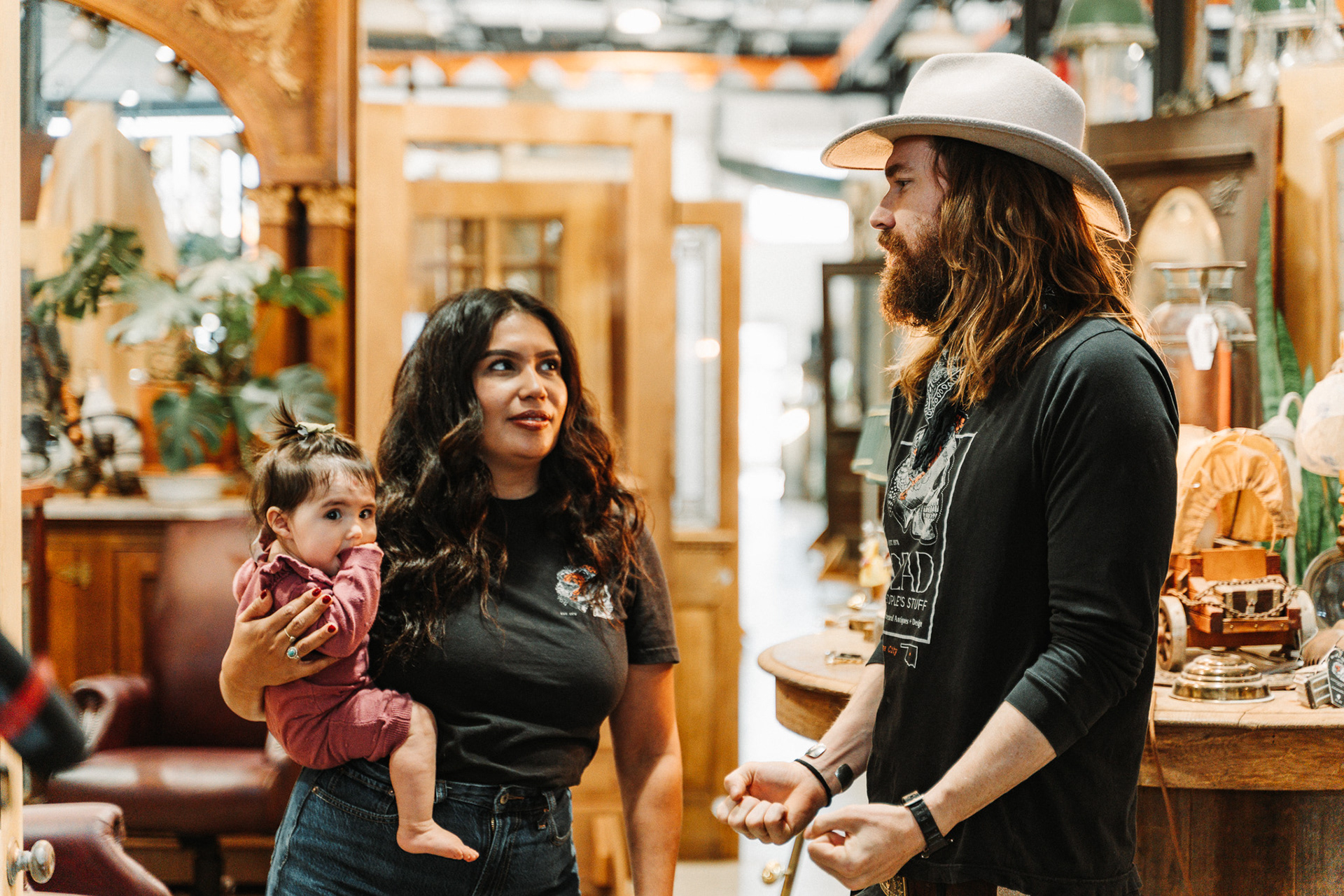 Curran and Marymar are the kind of couple who can make a huge warehouse feel personal. They are hands-on, curious, and clearly obsessed with the stories behind what they sell. You might even meet their newest team member, their six-month-old baby, Amelia Allesandre Fudge the Great, who joins them during the tour like she owns the place.